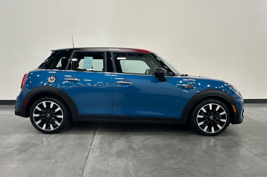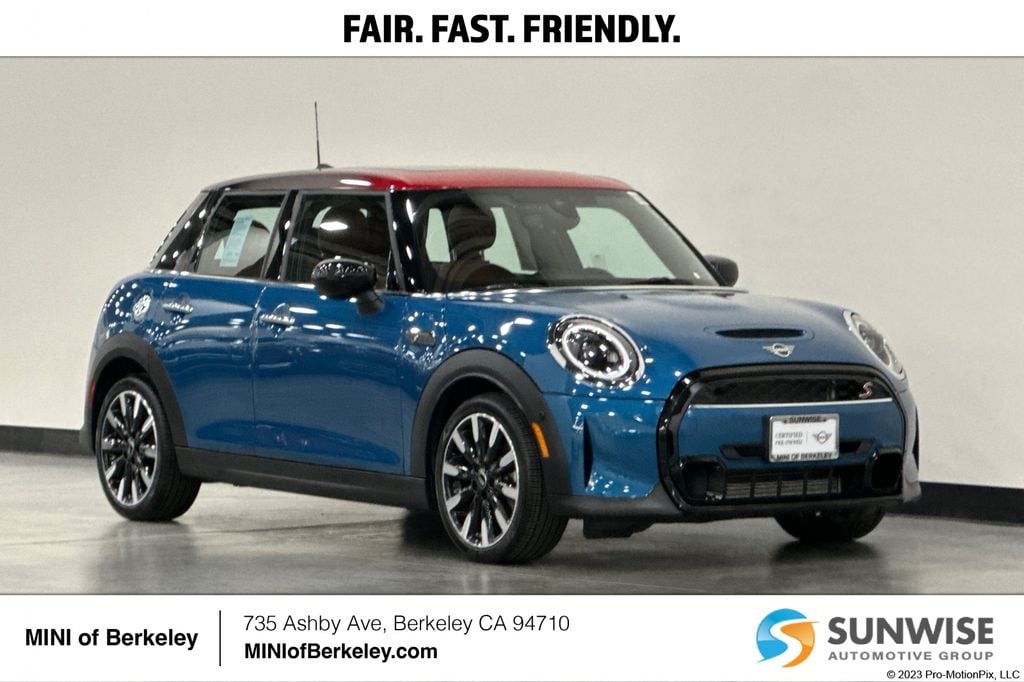 Certified. Island Blue Metallic 2023 MINI Cooper S Iconic FWD 7-Speed Automatic 2.0L 16V TwinPower Turbo ABS brakes, Advanced Real-Time Traffic Information, Alloy wheels, Body Color Roof, Brake assist, Comfort Access Keyless Entry, ConnectedDrive Services, Cross Punch Leather Upholstery, Electronic Stability Control, Emergency communication system, Front dual zone A/C, Heated door mirrors, Heated Front Seats, Heated front seats, Iconic Trim 2.0, Illuminated entry, Low tire pressure warning, Media Display, MINI Connected, MINI Connected XL, Piano Black Exterior Trim, Power moonroof, Rear-View Camera, Remote keyless entry, Remote Services, Silver Checkered Interior Surface, Standard Headliner, Traction control, Universal Garage-Door Opener, Wheels: 18" x 7.0" Pulse Spoke 2-Tone.