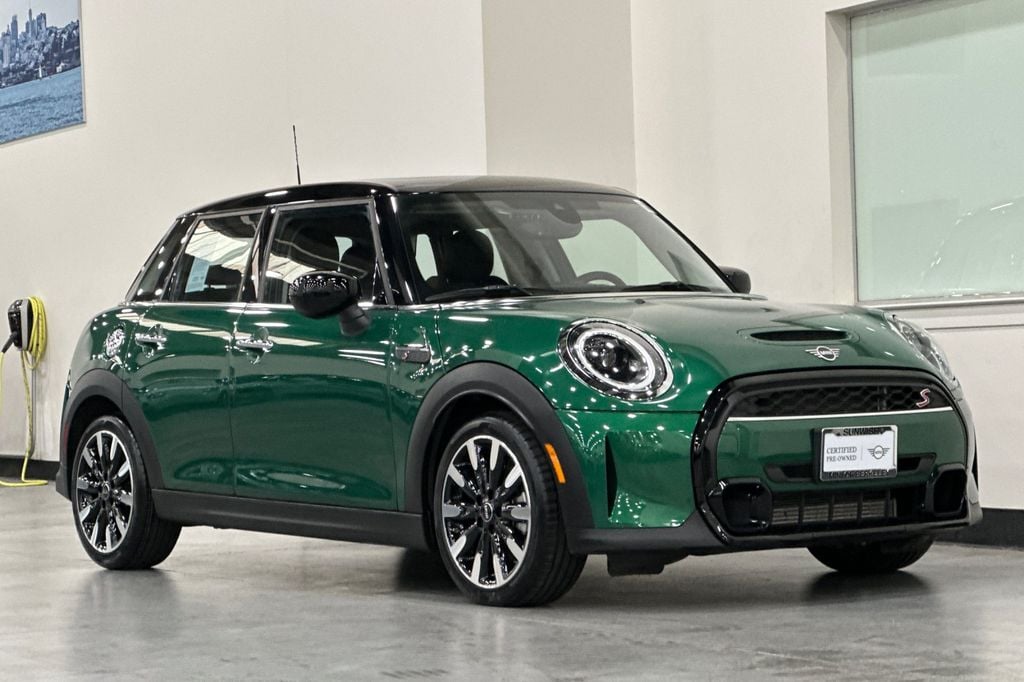 Certified. British Racing Green 2024 MINI Cooper S Signature FWD 7-Speed Automatic 2.0L 16V TwinPower Turbo Active Driving Assistant, Advanced Real-Time Traffic Information, Aluminum Interior Surface, Ambient Lighting, Apple CarPlay Compatibility, Auto-Dimming Rear-View Mirror, Body Color Roof, Comfort Access Keyless Entry, ConnectedDrive Services, Dual Zone Auto Climate Control, Dynamic Digital Instrument Cluster, Enhanced USB & Bluetooth, Front Center Armrest, Heated Front Seats, MINI Assist eCall, MINI Connected, MINI Driving Modes, MINI Head-Up Display, MINI Navigation, MINI TeleServices, Panoramic Moonroof, Power-Folding Mirrors, Rear Park Distance Control, Rear-View Camera, Remote Services, Signature Trim, SiriusXM Satellite Radio w/1 Year Subscription, Storage Package, Wheels: 17" x 7.0" Tentacle Spoke Silver Alloy.